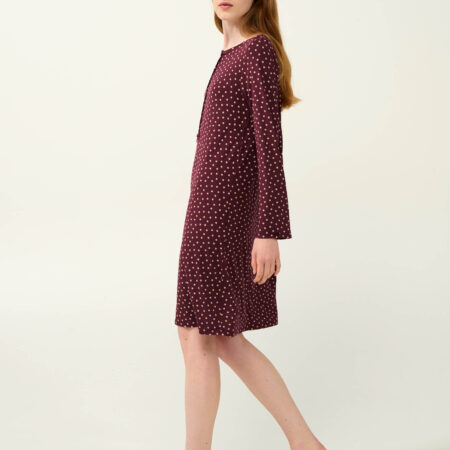 Camasa de noapte de vara confectionata din micromodal delicat imprimat, cu maneci scurte evazate si decolteu rotunjit ce se inchide in nasturi.